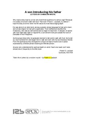 Why read a diary kept by a man who lived three-quarters of a century ago? Because it is a diary of a man’s walk with God. That man—Frank C. Laubach, my father— kept this diary at a time when his life was at its most discouraging depth...