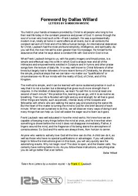 You hold in your hands a treasure provided by Christ to all people who long to live their real life today in the constant presence and power of God. It comes through the soul of a man who lived such a life—Frank Laubach. He was a quintessentially modern man, totally at home in world affairs at all levels, but in all contexts the constant servant of Christ and of his fellow human beings. An international statesman for Christ, Laubach had the most profound simplicity, intelligence, and spirituality. As you will find, the man himself is even greater than his message. He himself is the assurance that what he says about a constant life with God and in God is true...