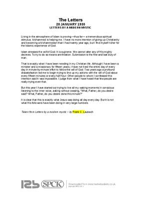 Living in the atmosphere of Islam is proving—thus far— a tremendous spiritual stimulus. Mohammed is helping me. I have no more intention of giving up Christianity and becoming a Mohammedan than I had twenty year ago, but I find myself richer for the Islamic experience of God...