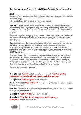 Over the last week Jerusalem had been filling up with people from all over the world, people wearing exotic clothes and speaking in different languages, they had come to celebrate harvest, to thank God for his wonderful gifts. Still Jesus friends met together, they met and they waited, and they prayed.