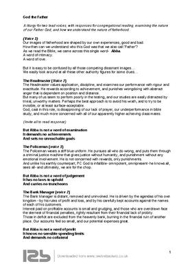 A liturgy for two lead voices, with responses for congregational reading, examining the nature of our Father God, and how we understand the nature of fatherhood.