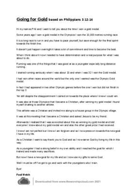 A Puppet sketch based upon Philippians 3:12-14 pressing on towards the goal.