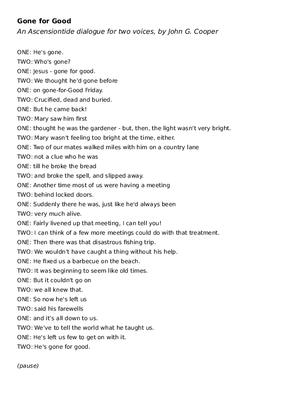 An Ascensiontide dialogue for two voices, by John G. Cooper