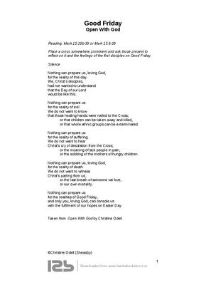 Place a cross somewhere prominent and ask those present to reflect on it and the feelings of the first disciples on Good Friday.