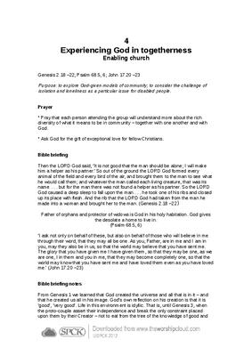 Purpose: to explore God-given models of community; to consider the challenge of isolation and loneliness as a particular issue for disabled people…