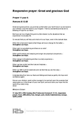 17 July 2011, Fifth Sunday after Pentecost, Romans 8: 12-25, responsive