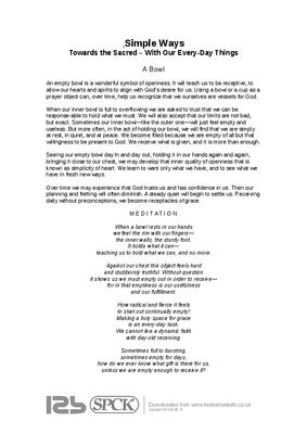 An empty bowl is a wonderful symbol of openness. It will teach us to be receptive, to allow our hearts and spirits to align with God’s desire for us. Using a bowl or a cup as a prayer object can, over time, help us recognize that we ourselves are vessels for God.