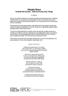 Many people have used rosary beads, mala beads, ankhs and crosses, amulets and crystals, as objects of significance. If we are not drawn to a specifically religious object, perhaps a little, ordinary stone will do...