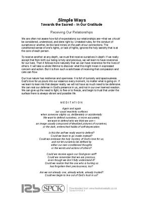To receive another at any depth, we must first receive ourselves in depth. If we really accept that from birth our being is holy and precious, we will learn to have reverence for our lives...