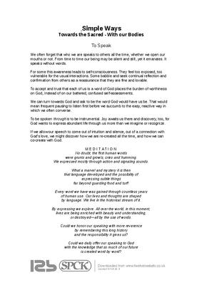 Taken from Simple Ways - Towards The Sacred