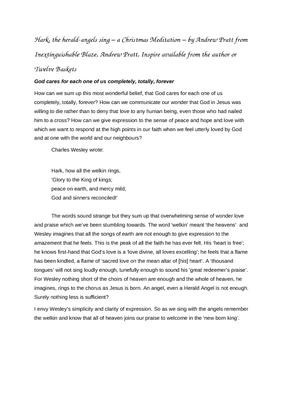 Hark, the herald-angels sing - a Christmas Meditation - by Andrew Pratt from Inextinguishable Blaze, (Andrew Pratt, Inspire) available from the author or Twelve Baskets