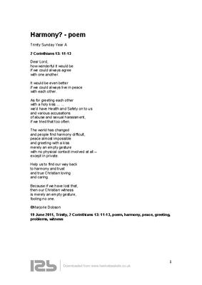19 June 2011, Trinity, 2 Corinthians 13: 11-13, poem, harmony, peace, greeting,