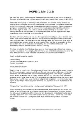 This reflection/short sermon compares the hope we have in Christ with the anticipation of going on holiday. Preparation for a holiday is seen as similar to living our life in waiting for his return. The hope we have is analysed to indicate how we might best respond to the anticipation
