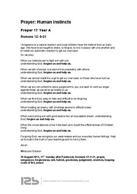28 August 2011, 11th Sunday after Pentecost, Romans 12: 9-21, prayer,