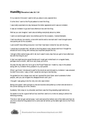 A puppet sketch about being humble and recognising that there are other who are important too based upon Luke 14: 7-14