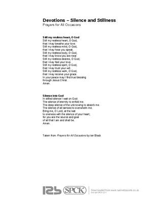 Two Devotional Prayers entitled Still my restless heart, O God and Silence into God.