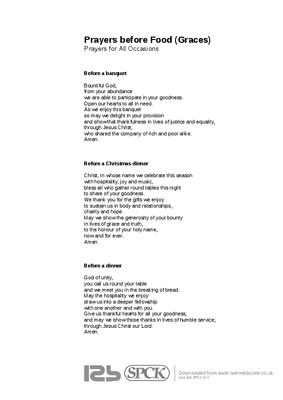 Four prayers (graces) for Before a banquet, Before a Christmas dinner, Before a dinner and Before a meal