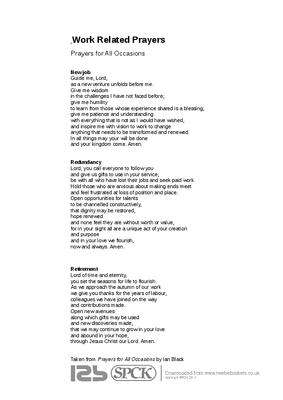 Three work-related prayers - "New Job", "Redundancy" and "Retirement".