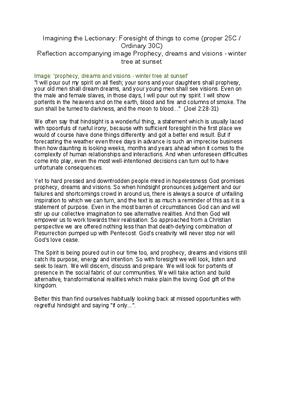 Text to accompany image "Prophecy, dreams and visions - winter tree at sunset"