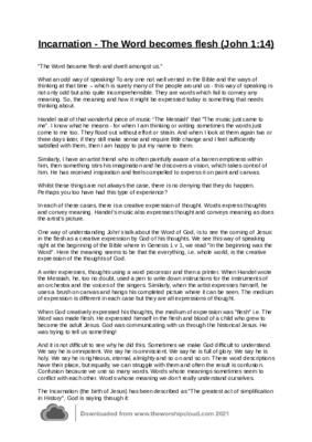This exploration of the phrase "The Word became flesh" considers it in its context and how this can be be more easily understood using todays language. This is done by comparing it with various forms of artistic expression.