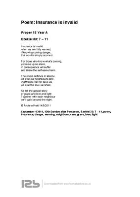 September 4 2011, 12th Sunday after Pentecost, Ezekiel 33: 7 – 11, poem,