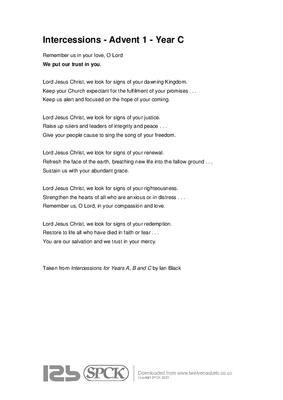 Remember us in your love, O Lord We put our trust in you. Lord Jesus Christ, we look for signs of your dawning Kingdom. Keep your Church expectant for the fulfilment of your promises . . . Keep us alert and focused on the hope of your coming. Lord Jesus Christ, we look for signs of your justice. Raise up rulers and leaders of integrity and peace . . .