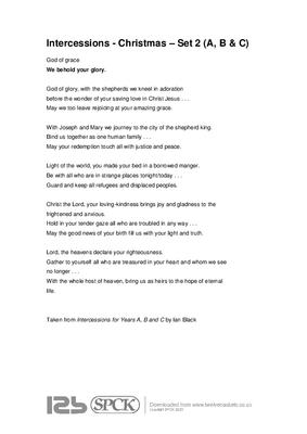 God of grace We behold your glory. God of glory, with the shepherds we kneel in adoration before the wonder of your saving love in Christ Jesus . . . May we too leave rejoicing at your amazing grace. With Joseph and Mary we journey to the city of the shepherd king. Bind us together as one human family . . .