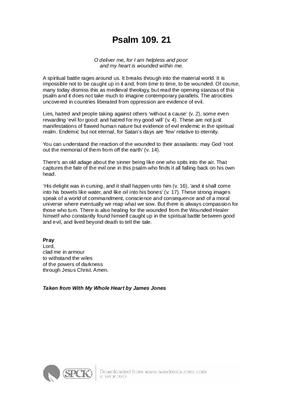 A spiritual battle rages around us. It breaks through into the material world. It is impossible not to be caught up in it and, from time to time, to be wounded. Of course, many today dismiss this as medieval theology, but read the opening stanzas of this psalm and it does not take much to imagine contemporary parallels. The atrocities uncovered in countries liberated from oppression are evidence of evil...