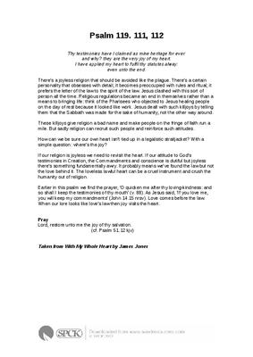 There’s a joyless religion that should be avoided like the plague. There’s a certain personality that obsesses with detail; it becomes preoccupied with rules and ritual; it prefers the letter of the law to the spirit of the law. Jesus clashed with this sort of person all the time. Religious regulations became an end in themselves rather than a means to bringing life: think of the Pharisees who objected to Jesus healing people on the day of rest because it looked like work. Jesus dealt with such killjoys by telling them that the Sabbath was made for the sake of humanity, not the other way around...