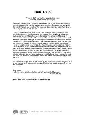 This psalm speaks of the intimate knowledge God has of each of us. Jesus said as much, in that even the hairs on our head are numbered. There are no other words that match the truth and beauty of this prayer so allow me to say only why it always leaves my soul in a crumpled heap...
