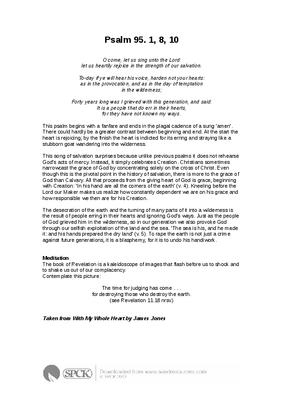This psalm begins with a fanfare and ends in the plagal cadence of a sung ‘amen’. There could hardly be a greater contrast between beginning and end. At the start the heart is rejoicing; by the finish the heart is indicted for its erring and straying like a stubborn goat wandering into the wilderness...