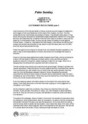 Luke’s account of the trial and death of Jesus revolves around images of judgement, and images of truth and falsehood. At the start of the chapter, one trial – the trial conducted by the chief priests and scribes of Israel – has already taken place. It has found Jesus guilty, because the assembled judges desperately wanted him to be guilty. But they are aware that the ‘evidence’ that they have used to condemn Jesus will not stand up in a trial before Pilate. So they accuse Jesus of leading a revolt against Roman taxes – a clear lie. Just before the Last Supper, Luke shows us that the chief priests and scribes had intended to trap Jesus on just this issue (see Luke 20.19ff.), and that Jesus had avoided the trap...