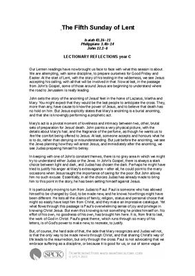 Our Lenten readings have now brought us face to face with what this season is about. We are attempting, with some discipline, to prepare ourselves for Good Friday and Easter. At the start of Lent, with the story of his testing in the wilderness, we see Jesus accepting his calling, with all that will be involved in that. Now at last, in the passage from John’s Gospel, some of those around Jesus are beginning to understand where the road to Jerusalem is really leading...