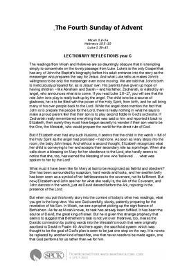 The readings from Micah and Hebrews are so dauntingly obscure that it is tempting simply to concentrate on the lovely passage from Luke. Luke’s is the only Gospel that has any of John the Baptist’s biography before his adult entrance into the story as the messenger who prepares the way for Jesus. And what Luke tells us makes John’s willingness to be only the messenger even more moving. We are told that John’s birth is meticulously prepared for, as is Jesus’ own. His parents have given up hope of having children – like Abraham and Sarah – and his father, Zechariah, is visited by an angel, who announces what is to come. If you read Luke 1.8–17, you will see that the role John is to play is really built up by the angel. The child is to be a source of gladness, he is to be filled with the power of the Holy Spirit, from birth, and he will bring many of his own people back to the Lord. While the angel does mention the fact that John is to prepare the people for the Lord, there is really nothing in what he says to make a proud parent feel that their son is to play second fiddle in God’s orchestra. If Zechariah really remembered everything that was said to him and reported it back to Elizabeth, then surely they must have begun secretly to wonder if their son was to be the One, the Messiah, who would prepare the world for the direct rule of God...