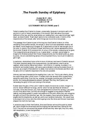 Today’s reading from Ezekiel is chosen, presumably, because it connects well to the account in Luke of Jesus’ presentation in the temple. Both talk about the proper fulfilment of the law, and the verse before our reading from Luke uses the phrase ‘eight days’, as does Ezekiel. ‘Eight days’ seems to be a complete cycle, in terms of the requirements of the temple, after which things can move into a new phase...