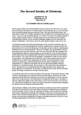 What is grace? Both John and Ephesians have the word more than once. It’s a word that we use quite frequently in Christian circles. Most meetings I go to, you know when they’ve ended because someone says the Grace. We say Grace before meals. But what does it mean? Its Christian use seems very divorced from the everyday use of the word – we know what a graceful dancer is, or what it is to have a few weeks of grace in which to finish a piece of work. The latter seems to be a bit closer to the Christian understanding of grace, but all of today’s passages suggest that the loveliness, the sense of ‘rightness’, in the former use of the word ‘grace’ needs to come into it, too...