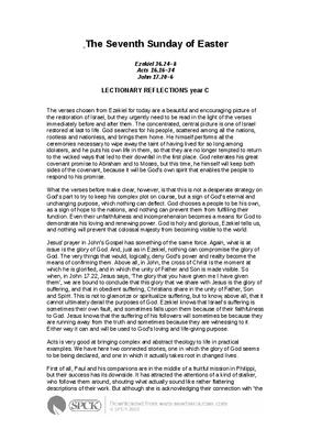 The verses chosen from Ezekiel for today are a beautiful and encouraging picture of the restoration of Israel, but they urgently need to be read in the light of the verses immediately before and after them. The concentrated, central picture is one of Israel restored at last to life. God searches for his people, scattered among all the nations, rootless and nationless, and brings them home. He himself performs all the ceremonies necessary to wipe away the taint of having lived for so long among idolaters, and he puts his own life in them, so that they are no longer tempted to return to the wicked ways that led to their downfall in the first place. God reiterates his great covenant promise to Abraham and to Moses, but this time, he himself will keep both sides of the covenant, because it will be God’s own spirit that enables the people to respond to his promise...