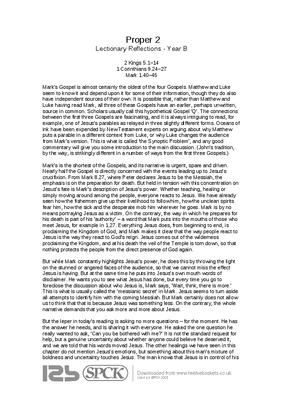 Mark’s Gospel is almost certainly the oldest of the four Gospels. Matthew and Luke seem to know it and depend upon it for some of their information, though they do also have independent sources of their own. It is possible that, rather than Matthew and Luke having read Mark, all three of these Gospels have an earlier, perhaps unwritten, source in common. Scholars usually call this hypothetical Gospel ‘Q’. The connections between the first three Gospels are fascinating, and it is always intriguing to read, for example, one of Jesus’s parables as relayed in three slightly different forms. Oceans of ink have been expended by New Testament experts on arguing about why Matthew puts a parable in a different context from Luke, or why Luke changes the audience from Mark’s version. This is what is called ‘the Synoptic Problem’, and any good commentary will give you some introduction to the main discussion. (John’s tradition, by the way, is strikingly different in a number of ways from the first three Gospels.)...