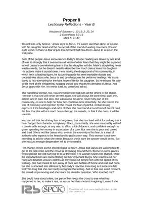 Both of the people Jesus encounters in today’s Gospel reading are driven by one kind of fear so strongly that it overcomes all kinds of other fears that they might be expected to feel. Jairus’s overwhelming fear is that his daughter will die. Mark’s storytelling never wastes words, but he doesn’t need to describe how much Jairus loves his daughter. His actions make it crystal clear...