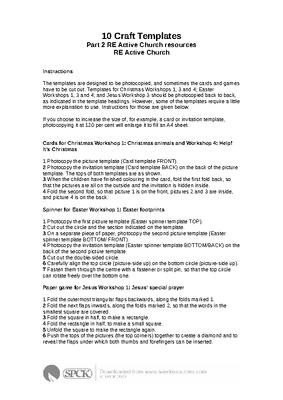 The templates are designed to be photocopied, and sometimes the cards and games have to be cut out. Templates for Christmas Workshops 1, 3 and 4; Easter Workshops 1, 3 and 4; and Jesus Workshop 3 should be photocopied back to back, as indicated in the template headings. However, some of the templates require a little more explanation to use. Instructions for those are given below...