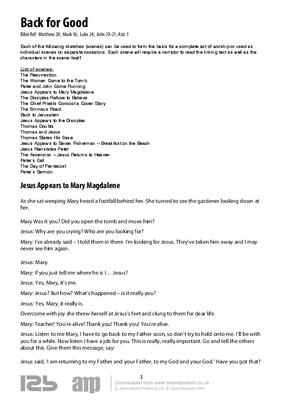 Each of the following sketches (scenes) can be used to form the basis for a complete act of worship or used as individual scenes on separate occasions. Each scene will require a narrator to read the linking text as well as the characters in the scene itself.
