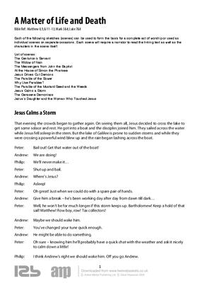 Each of the following sketches (scenes) can be used to form the basis for a complete act of worship or used as individual scenes on separate occasions. Each scene will require a narrator to read the linking text as well as the characters in the scene itself.