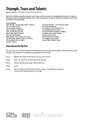 Each of the following sketches (scenes) can be used to form the basis for a complete act of worship or used as individual scenes on separate occasions. Each scene will require a narrator to read the linking text as well as the characters in the scene itself.