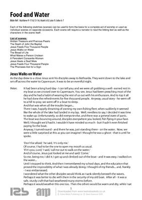 Each of the following sketches (scenes) can be used to form the basis for a complete act of worship or used as individual scenes on separate occasions. Each scene will require a narrator to read the linking text as well as the characters in the scene itself.