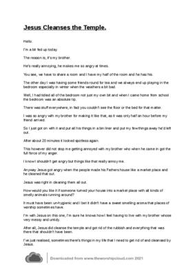 A puppet sketch about Jesus clearing out the temple and our lives too.