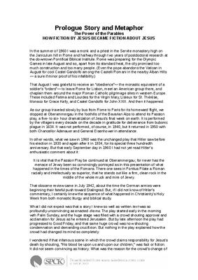 Prologue Story and Metaphor