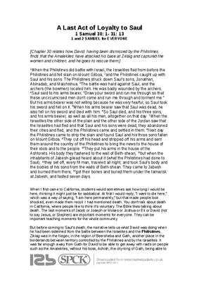 When I first came to California, students would sometimes ask how long I would be here, thinking it might just be for sabbatical. At first I would reply, “I want to die here,” which was a way of saying, “I am here permanently,” but that made people look shocked, even made them recoil. I had mentioned death. You don’t talk about death in California, where people like to think it’s voluntary. The Bible likes talking about death. The last moments of Jacob or Joseph or Moses or Joshua or Eli or David (not to say Jesus, or Stephen) are important moments for everyone. They can be important teaching moments for the whole community...