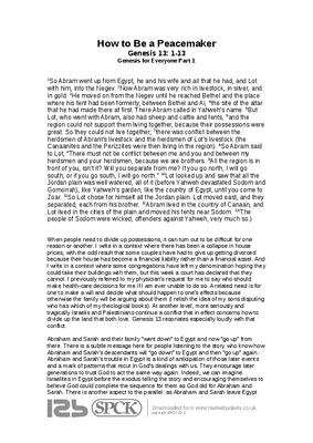 When people need to divide up possessions, it can turn out to be difficult for one reason or another. I write in a context where there has been a collapse in house prices, with the odd result that some couples have had to give up getting divorced because their house has become a financial liability rather than a financial asset. And I write in a context where some congregations have left my denomination hoping they could take their buildings with them, but this week a court has declared that they cannot. I previously referred to my physician’s request for me to say who should make health-care decisions for me if I am ever unable to do so. A related need is for one to make a will and decide what should happen to one’s effects because otherwise the family will be arguing about them (I relish the idea of my sons disputing who has which of my theological books). At another level, more seriously and tragically Israelis and Palestinians continue a conflict that in effect concerns how to divide up the land that both love. Genesis 13 resonates especially loudly with that conflict...