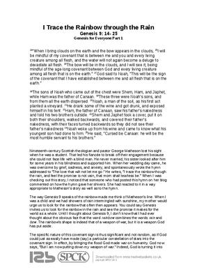 Nineteenth-century Scottish theologian and pastor George Matheson lost his sight when he was a student. That led his fiancée to break off their engagement because she could not face life with a blind man. He never married; his sister looked after him for some years in his blindness and supported him. When her wedding day came, he was overcome by grief, sadness, and anxiety, and spontaneously wrote the hymn addressed to “The love that wilt not let me go.” He writes, “I trace the rainbow though the rain, and feel the promise is not vain, that morn shall tearless be.” When I was checking out this story, I noticed that someone who had posted this hymn on her blog commented on how the hymn gave her shivers. She had reacted to it in a way appropriate to Matheson’s story as well as to the hymn...