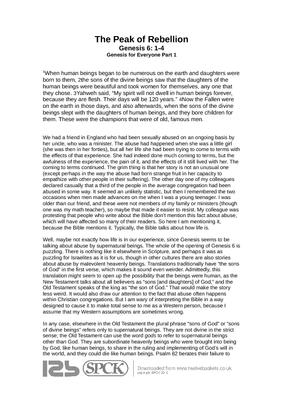 We had a friend in England who had been sexually abused on an ongoing basis by her uncle, who was a minister. The abuse had happened when she was a little girl (she was then in her forties), but all her life she had been trying to come to terms with the effects of that experience. She had indeed done much coming to terms, but the awfulness of the experience, the pain of it, and the effects of it still lived with her. The coming to terms continued. The grim thing is that her story is not an unusual one (except perhaps in the way the abuse had born strange fruit in her capacity to empathize with other people in their suffering). The other day one of my colleagues declared casually that a third of the people in the average congregation had been abused in some way. It seemed an unlikely statistic, but then I remembered the two occasions when men made advances on me when I was a young teenager. I was older than our friend, and these were not members of my family or ministers (though one was my math teacher), so maybe that made it easier to resist. My colleague was protesting that people who write about the Bible don’t mention this fact about abuse, which will have affected so many of their readers. So here I am mentioning it, because the Bible mentions it. Typically, the Bible talks about how life is...